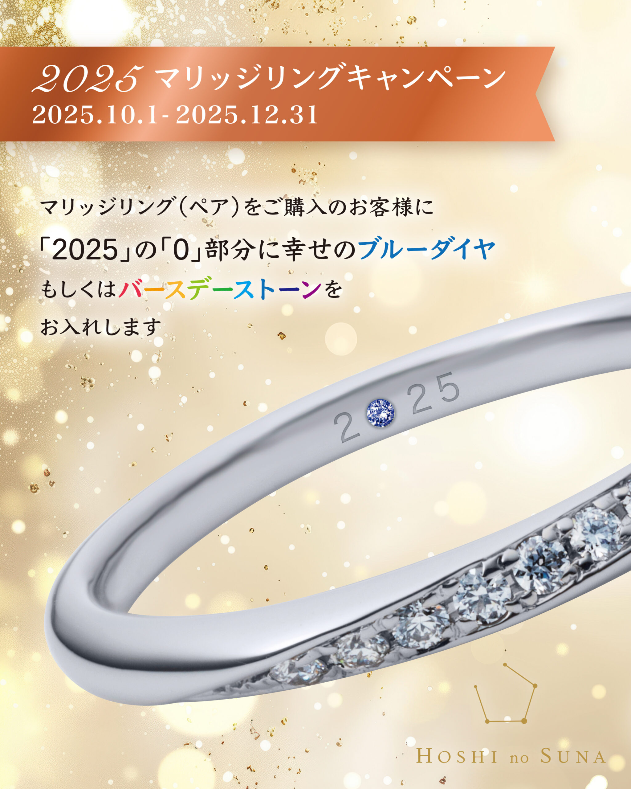 HOSHI no SUNAブライダルジュエリーを2025.10.1~12.29の期間中にご成約頂いたお客様に素敵なご成約特典をご用意しております