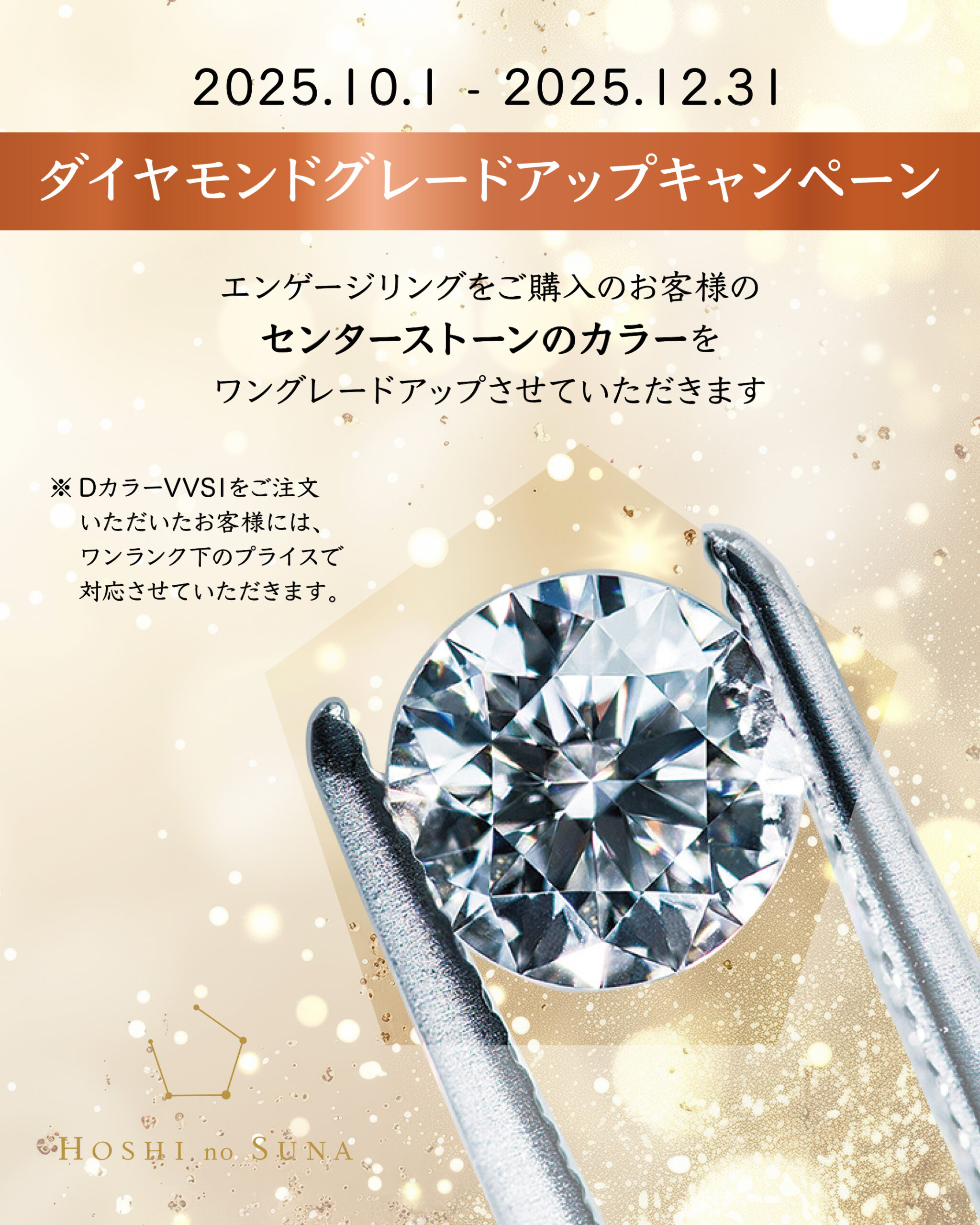 エンゲージリングをご購入のお客様にダイヤモンドのラーを1グレードUPいたします