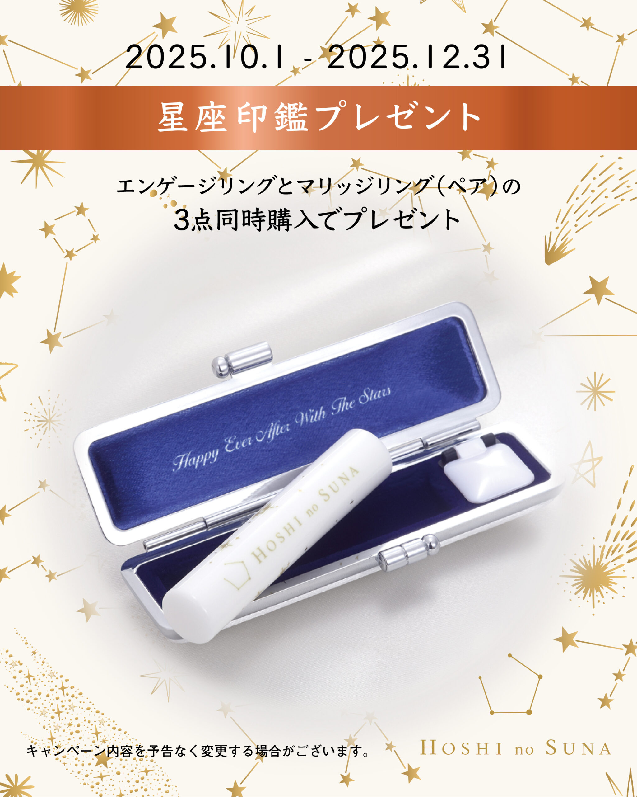 エンゲージリングとマリッジリングをセットでご成約頂きましたお客様にはHOSHI no SUNAオリジナル星座印鑑をプレゼント